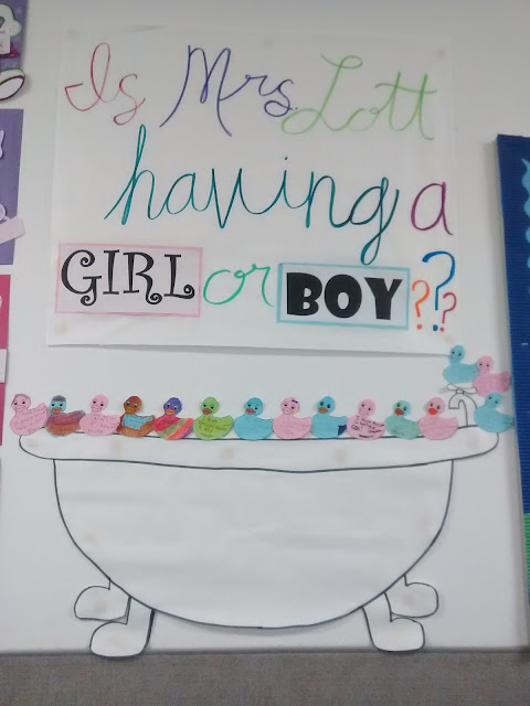 To announce the gender to my students, I built up the excitement by having them make guesses on a paper ducky and hang it on the wall outside my room.
